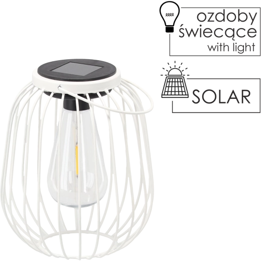 De stijlvolle witte solar lantaarn combineert functionele buitenverlichting met een elegante decoratie. Hij laadt op met zonlicht en gaat bij het donker worden automatisch aan, zodat je kunt genieten van gezellig licht zonder kabels of ingewikkelde installatie. Het minimalistische metalen ontwerp past perfect bij hout en groen en is ideaal voor tuin, terras, balkon en prieel.