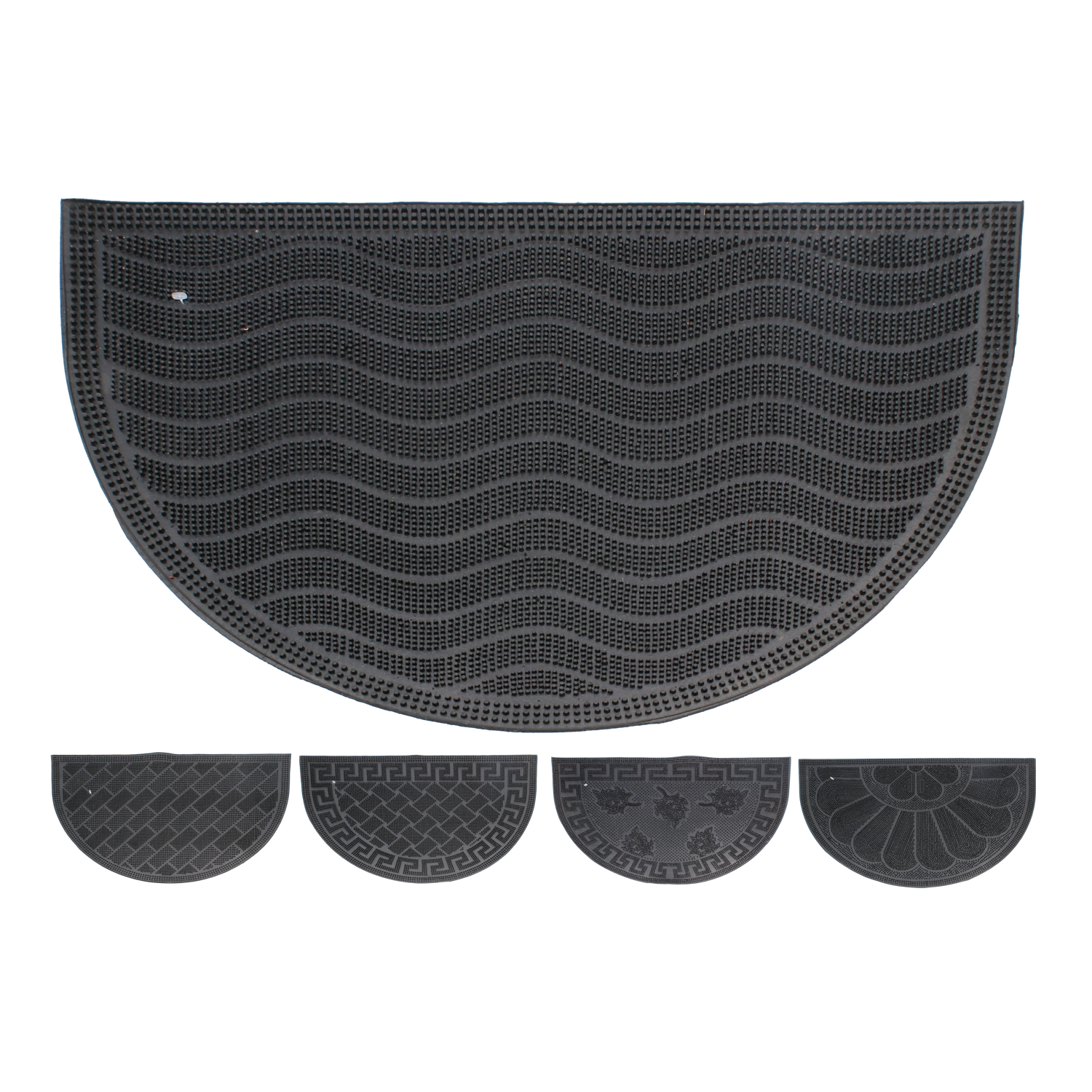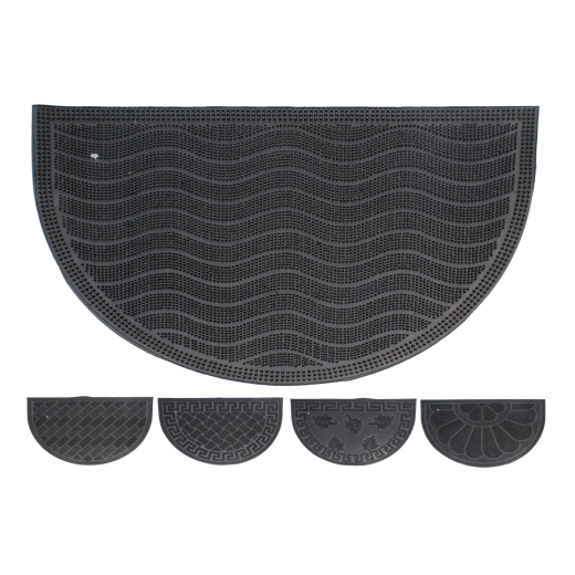 Deze halfronde rubbermat is ontworpen voor betrouwbaar gebruik bij ingangen van huizen, appartementen, kantoren en commerciële ruimtes. Dankzij de compacte afmetingen van 40 × 60 cm past hij gemakkelijk bij de meeste deuren en volgt de halfronde vorm elegant de entreezone. 100% natuurlijk rubber zorgt voor hoge duurzaamheid, lange levensduur en effectieve opvang van vuil.
