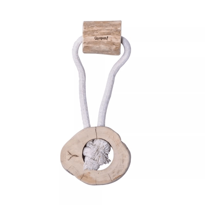 De Quapas! Circle is een geweldige keuze voor dagelijks spelen, training en ontspanning. Het combineert natuurlijk koffiebomenhout, geschikt om op te kauwen, met duurzaam katoenen touw voor trekspelletjes en apporteren. Dankzij de natuurlijke hardheid van het hout helpt het tandplak te verwijderen en ondersteunt het gezond tandvlees.