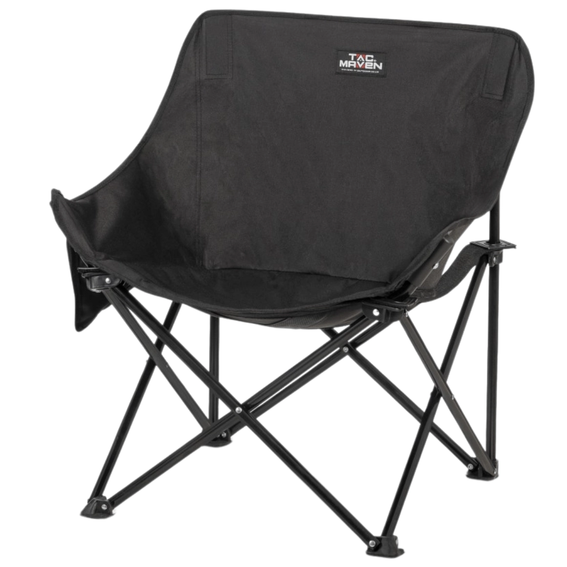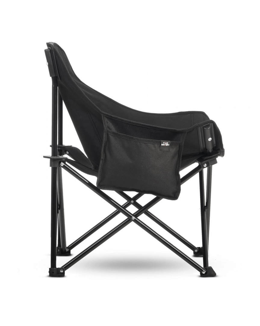 De duurzame en comfortabele opvouwbare kampeerstoel TAC MAVEN Pentagon in het zwart biedt een robuust stalen frame, slijtvaste 600D Oxford-stof met PVC-coating en een draagvermogen tot 150 kg. Dankzij de gepolsterde zitting, de 10° verstelbare rugleuning en anti-slip voeten is hij ideaal voor kamperen, aan het water, op het strand en de schietbaan.