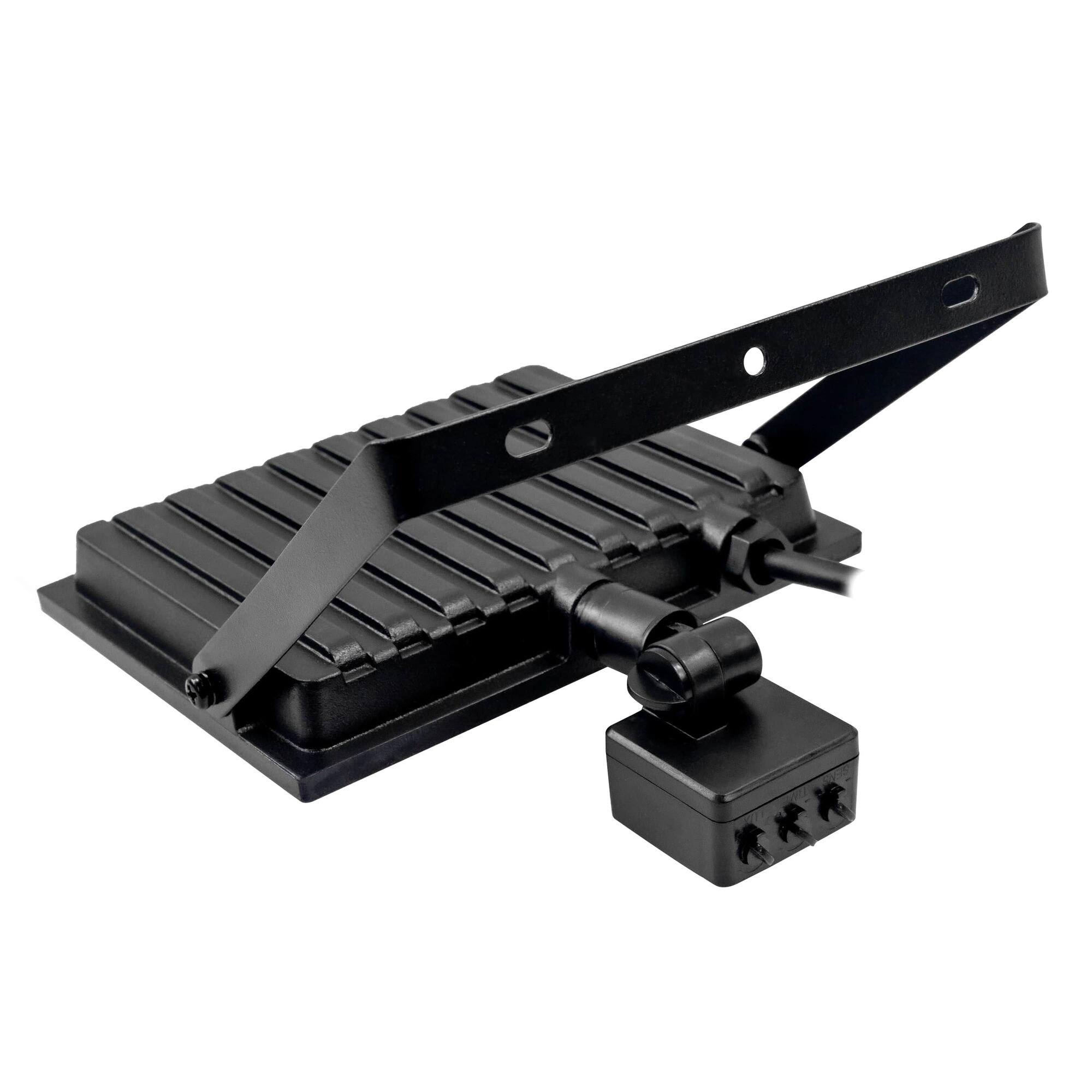 De schijnwerper schakelt automatisch in bij detectie van beweging en biedt nauwkeurige instelling van bereik (SENS), brandtijd (TIME) en lichtgevoeligheid (LUX) voor een zuinige en veilige werking.