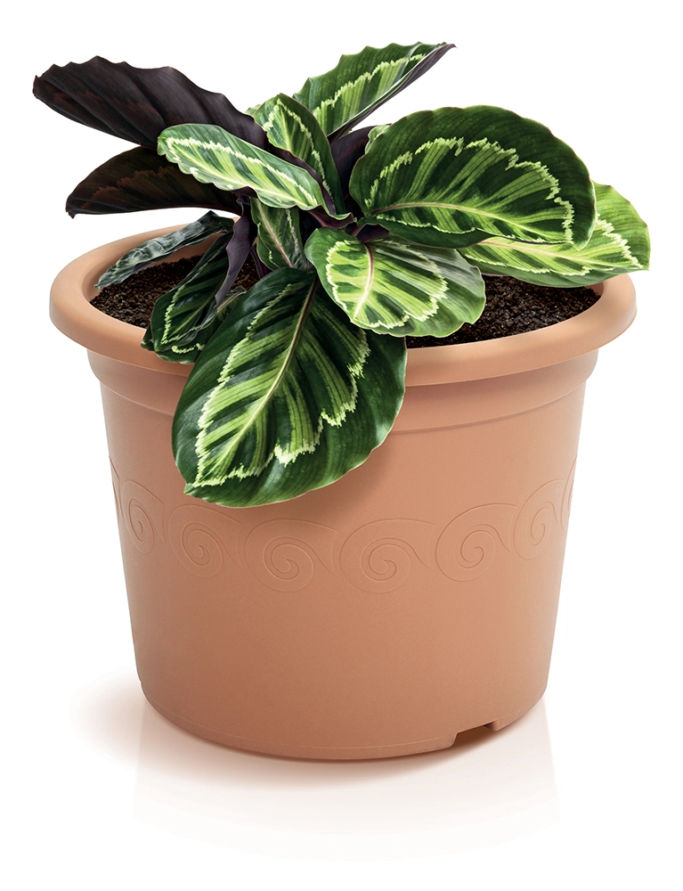 Breng een natuurlijke touch in elke hoek van je huis met deze plastic bloempot in een elegante terracottatint. Hij is licht, bestand tegen weersinvloeden en vorst en past dankzij het eenvoudige design perfect in zowel moderne als klassieke interieurs. De perfecte keuze voor het kweken van kleinere planten, kruiden en vetplanten.