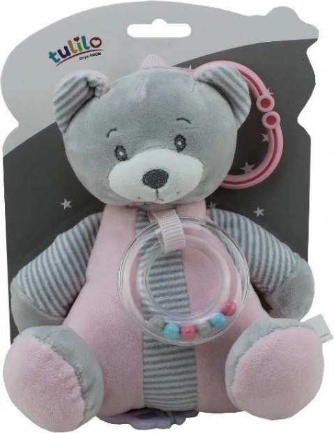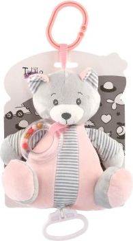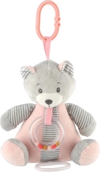 Onze ophaalbare pluche teddybeer is ontworpen om kinderen geborgenheid en comfort te bieden. De muziekdoos in de beer speelt een zachte melodie die ideaal is om in slaap te vallen. Het pluche materiaal is zacht en mild voor de babyhuid. Het speelgoed is uitgerust met een rammelaar bij de hals die bij beweging geluiden maakt en zo de auditieve waarneming van het kind stimuleert. Dankzij de praktische clip kan de beer eenvoudig aan een ledikant, kinderwagen of autostoeltje worden bevestigd, ideaal voor gebruik thuis en onderweg.