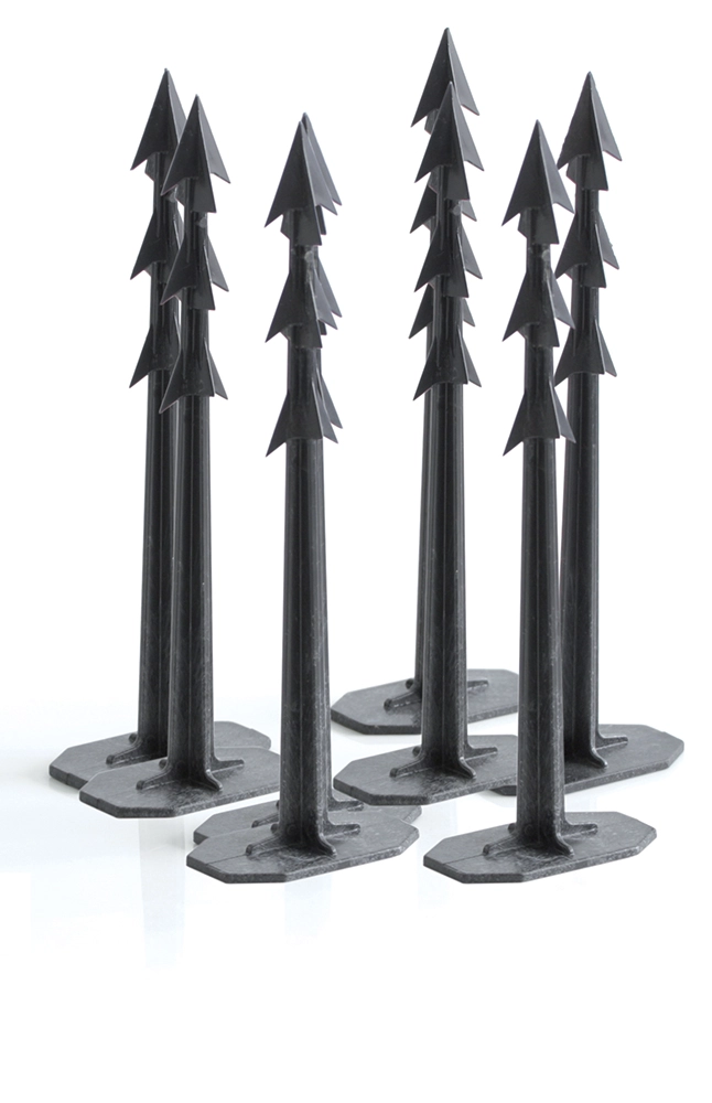 Speciale weerhaakjes op de schacht voorkomen lostrekken en verschuiven van de bevestigde materialen voor langdurige stabiliteit van de borders.