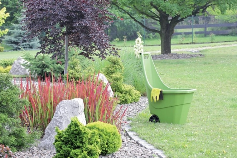 Neemt minder plaats in dan een klassieke kruiwagen, past gemakkelijk in de schuur of garage en is altijd binnen handbereik.
