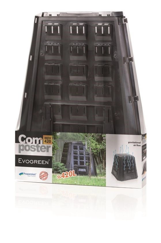 De Compostbak Evogreen 420 l is een ideale keuze voor elke tuin. Het grote volume biedt plaats aan gras, bladeren en keukenafval en zet dit om in voedingsrijke compost. De duurzame uitvoering en doordachte ventilatieopeningen zorgen voor een optimale luchtcirculatie, wat de efficiënte afbraak van materiaal bevordert.