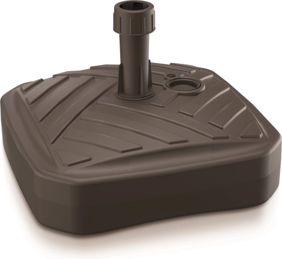 Praktische parasolvoet in de elegante kleur umber biedt stabiliteit, eenvoudige hantering en weerbestendigheid. Kan worden gevuld met water of zand tot 12 l voor een veilige verankering, ook bij wind. Dankzij de compatibiliteit met stokken van 24–30 mm past hij bij de meeste gangbare parasols en met zijn decoratieve rattanlook vult hij tuin, terras en zwembadomgeving stijlvol aan.