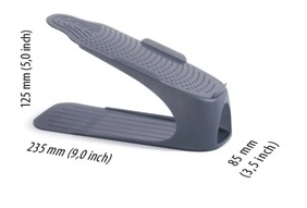 De schoenenorganizer in elegant antraciet is een slimme oplossing voor de schoenenkast en kledingkast. Door schoenen boven elkaar te plaatsen behoud je overzicht en bespaar je tegelijk tot 50% ruimte. Het antislipopervlak houdt schoenen veilig op hun plek en de flexibele constructie is ook geschikt voor hogere modellen tot 12 cm.