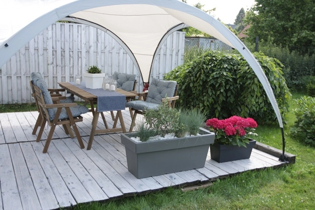 Hoogwaardig kunststof is bestand tegen regen en zon en gaat een heel seizoen mee zonder ingewikkeld onderhoud. Af en toe schoonmaken is voldoende.