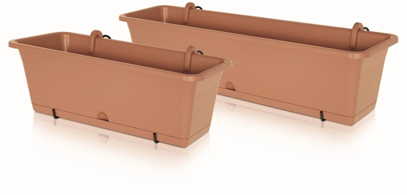 Geniet van weelderige bloei zonder onnodige inspanning. De hangbloembak CAMELIA W bespaart ruimte op het balkon en biedt planten tegelijk een stabiele omgeving dankzij de doordachte combinatie van geïntegreerde haken, afvoergaten en een praktisch bewateringssysteem. Het klassieke design in terracotta past bij zowel moderne als traditionele architectuur.