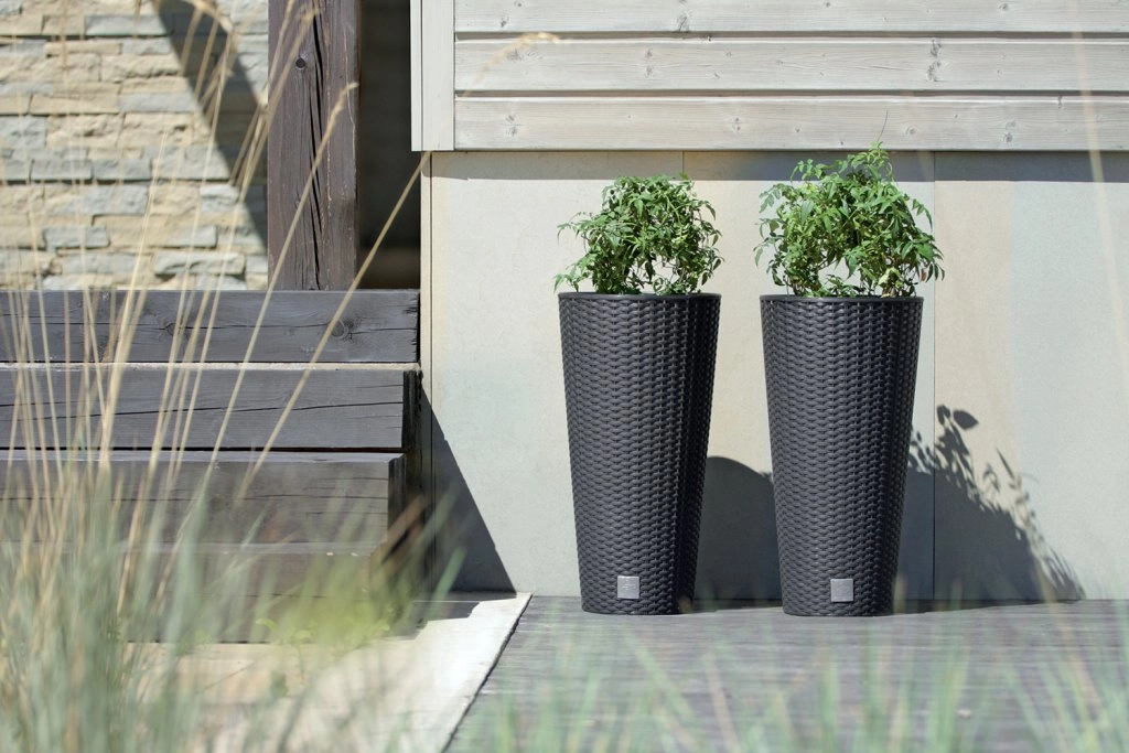 De hoge bloempot Rato Tubus in het wit geeft terras, balkon en woonkamer een strakke en tijdloze uitstraling. Het oppervlak met ratanimitatie oogt elegant, is eenvoudig te onderhouden en bestand tegen weersinvloeden. De geïntegreerde kunststof inzet maakt snel beplanten en gemakkelijke verzorging mogelijk.