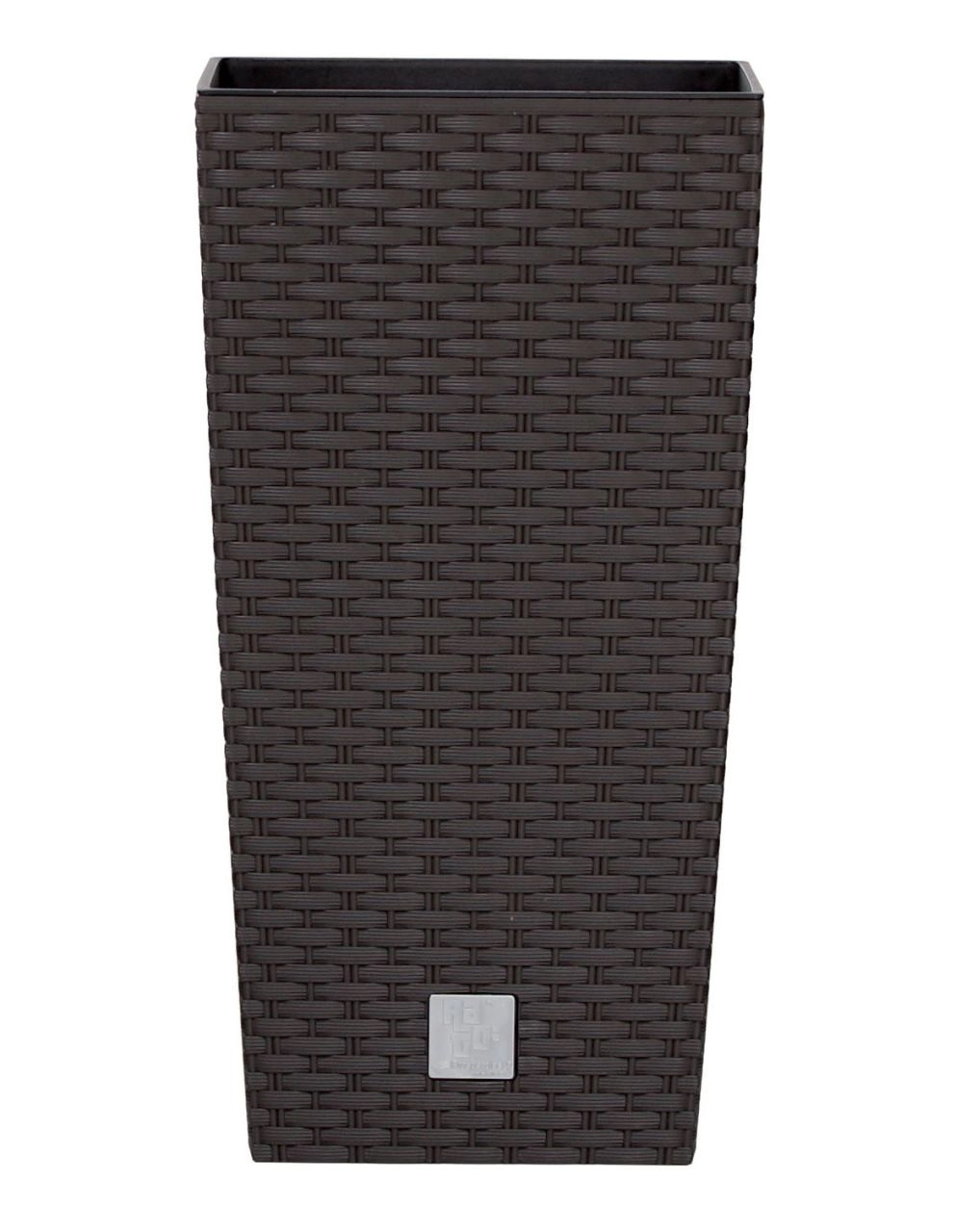 De hoge, vierkante bloempot Rato Square combineert een stijlvolle rieten look met praktische eigenschappen. De duurzame kunststof kan regen, zon en vorst aan en is daarmee een uitstekende keuze voor gebruik het hele jaar door, binnen én buiten. Dankzij de uitneembare inzet verloopt verpotten snel en schoon.
