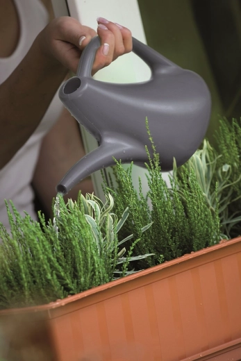De elegante EOS-gieter in de populaire salietint is een uitstekende keuze voor de dagelijkse verzorging van je planten. De verlengde tuit zorgt voor een gerichte waterstroom rechtstreeks naar de wortels, zodat er geen water wordt gemorst en bladeren niet onnodig nat worden. Dankzij de ergonomische handgreep ligt de gieter prettig in de hand en is het werken ermee licht, zelfs bij volle inhoud.