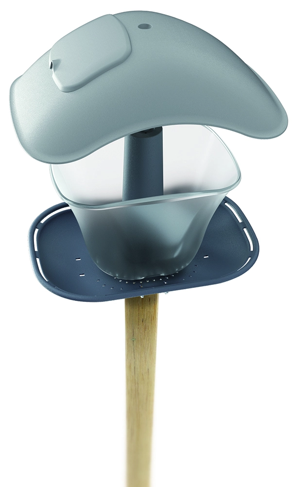 Het schuine dakje in antraciet biedt effectieve beschutting en beschermt het voer tegen vocht, zodat het vers en aantrekkelijk blijft voor vogels.