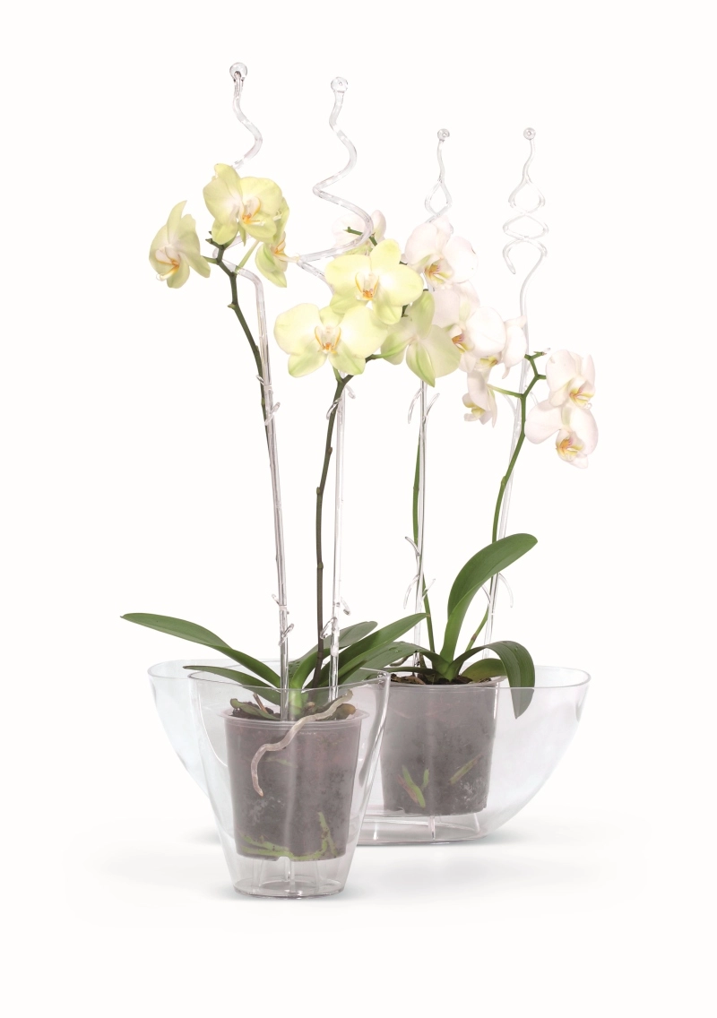 Subtiele curves en zijoogjes geleiden de stelen elegant en geven orchideeën stijl zonder in te leveren op stabiliteit.