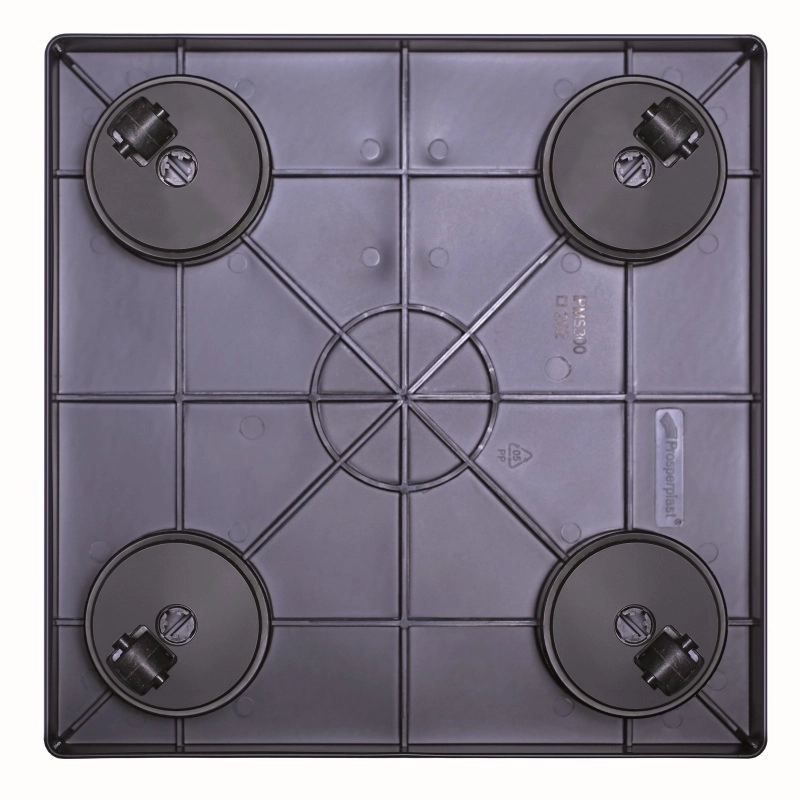 De robuuste uitvoering van hoogwaardig kunststof biedt een hoge weerstand tegen vocht en weersinvloeden. De afmeting 44,6 × 44,6 cm past bij de meeste standaard bloempotten en zorgt zo voor veelzijdig gebruik in huis, op het terras en op het balkon.