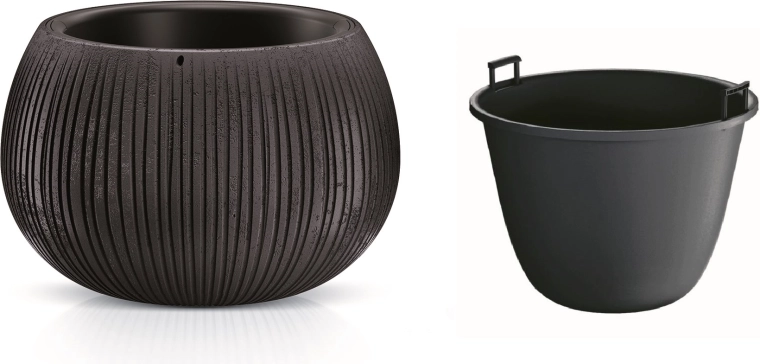 De binneninzet met handgrepen maakt beplanten, water geven en reinigen gemakkelijk – je haalt de plant er comfortabel uit zonder rommel.