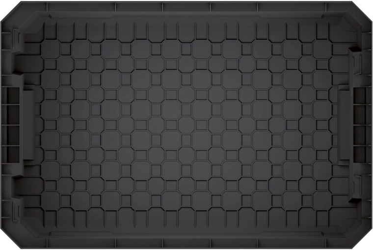Geribde wanden van slijtvast kunststof kunnen zwaar gebruik aan, de box draagt tot 50 kg en geselecteerde modules weerstaan een directe belasting tot 120 kg.