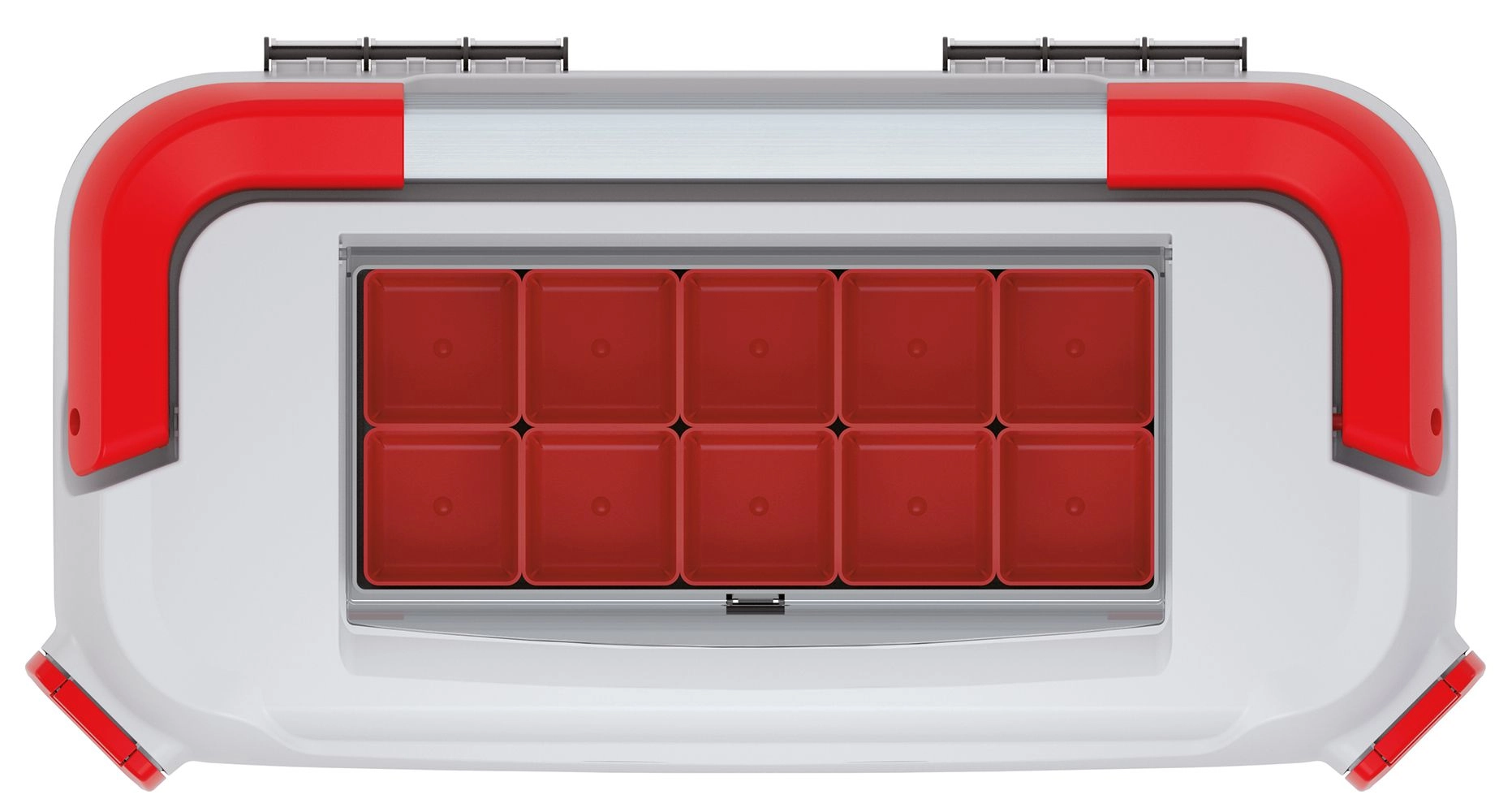 Stevige kunststof behuizing en betrouwbare sluitingen beschermen de inhoud tegen stof en vuil tijdens transport en opslag.