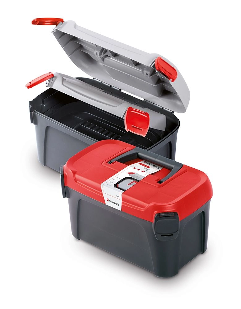 De SMART gereedschapskistenset in elegant zwart met rood deksel is ontworpen voor dagelijks gebruik in de werkplaats, garage en op locatie. De duurzame kunststof constructie beschermt de inhoud tegen mechanische beschadiging en verlengt de levensduur van de kisten. Dankzij de twee verschillende formaten sorteert u gereedschap snel zodat u altijd vindt wat u nodig hebt.