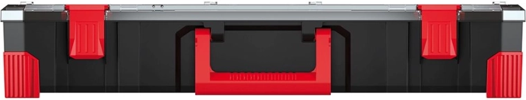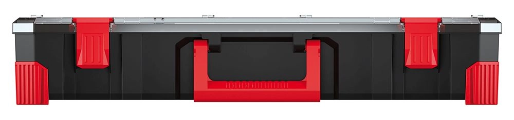 De robuuste behuizing van een mengsel van hoogsterke polymeren wordt aangevuld met elastomeer hoeken voor extra bescherming tegen schokken. Betrouwbare ABS-sluitingen houden het deksel stevig gesloten, ook bij frequent transport. Het ergonomische handvat zorgt voor een comfortabele en veilige grip.