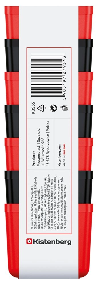De bakjes zijn gemaakt van duurzaam kunststof voor dagelijks gebruik in werkplaats en huishouden. Dankzij het uniforme formaat passen ze gemakkelijk in rekken, lades of organizers en helpen ze het werkblad overzichtelijk te houden.
