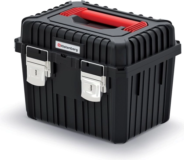 De compacte maar ruime Kistenberg Heavy gereedschapskoffer in het zwart is ontworpen voor zowel professioneel als hobbymatig gebruik. Het duurzame ribprofiel verhoogt de stevigheid, metalen grendels zorgen voor een zekere afsluiting en de centrale afsluitbare zone maakt het mogelijk een hangslot toe te voegen voor extra veiligheid.