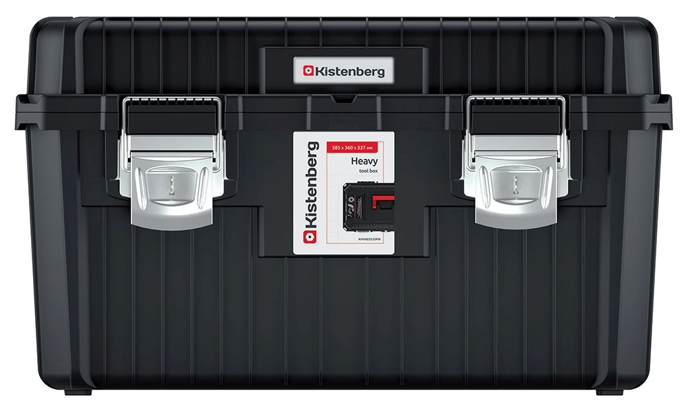 Robuuste gereedschapskoffer voor professionals en doe-het-zelvers met afmetingen 585 × 360 × 337 mm, biedt een duurzame constructie, metalen sloten voor veilig afsluiten, praktische buitenvakken in het deksel en een uitneembare organizer voor kleine onderdelen.