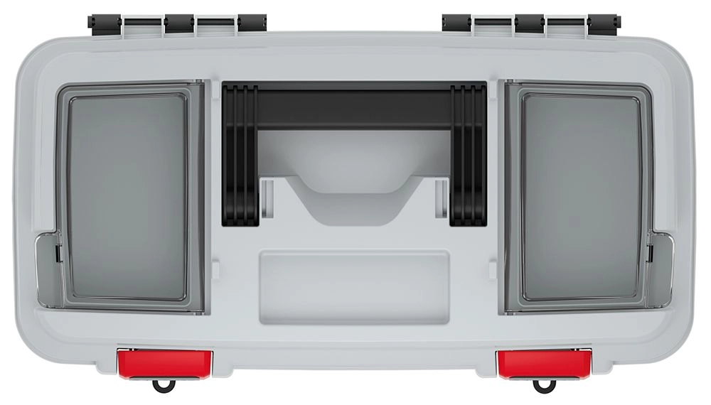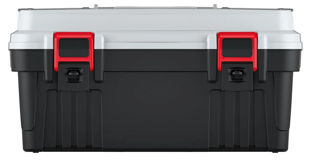 Sterke sluitgespen en duurzaam kunststof beschermen de inhoud tijdens transport, zelfs in veeleisende omstandigheden in werkplaats of op de bouw.