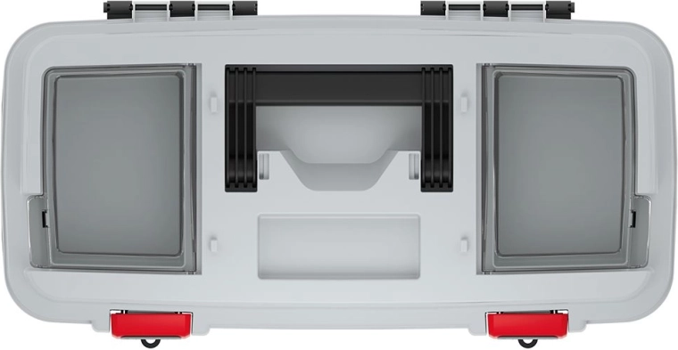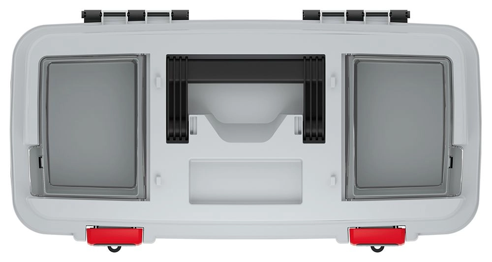 Robuuste kunststof, verstevigde ribben en sterke sluitingen beschermen de inhoud tijdens vervoer en opslag.