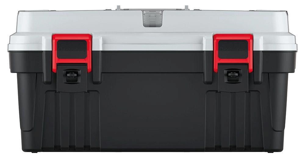 Stevige kunststof met verstevigde ribben en hoogwaardige sluitingen beschermt het gereedschap tijdens vervoer en opslag, zowel in de werkplaats als onderweg.