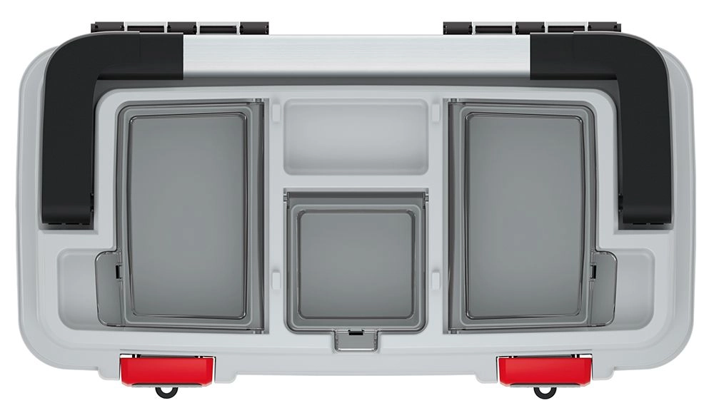 Praktische buitenvakken in het deksel houden schroeven, pluggen en kleine onderdelen precies waar u ze nodig hebt – veilig afgesloten en direct bij de hand.