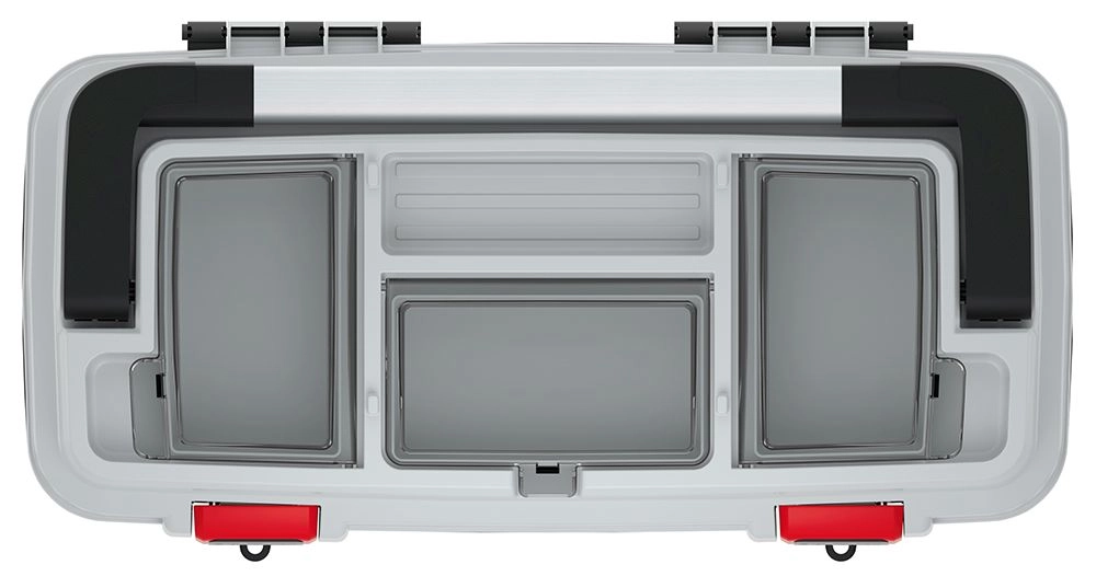 De binnenruimte wordt aangevuld met een uitneembare inzet en meerdere vakken in het deksel voor maximale orde.