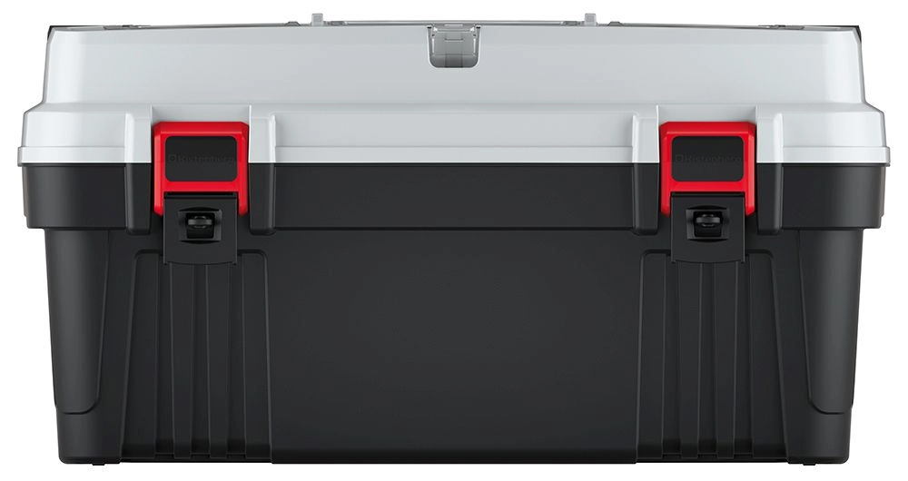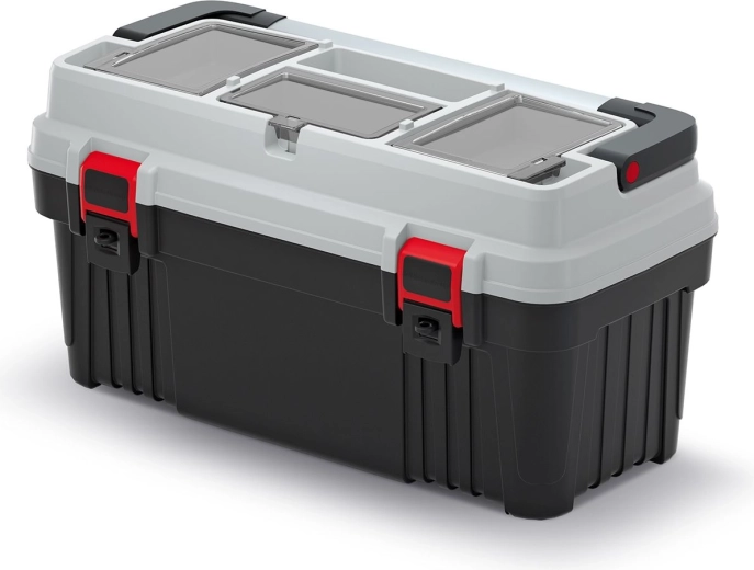 Praktische en duurzame gereedschapskoffer met een metalen handgreep voor comfortabel dragen. Biedt een ruim opbergvak, een uitneembare inzet voor betere organisatie en afsluitbare buitenvakken voor kleingoed. Ideale keuze voor werkplaats, service en thuisgebruik.