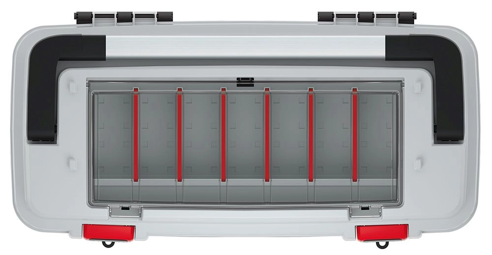 De transparante deksel en rode verdelers geven snel inzicht in de inhoud en scheiden schroeven, bits en andere kleinigheden veilig.