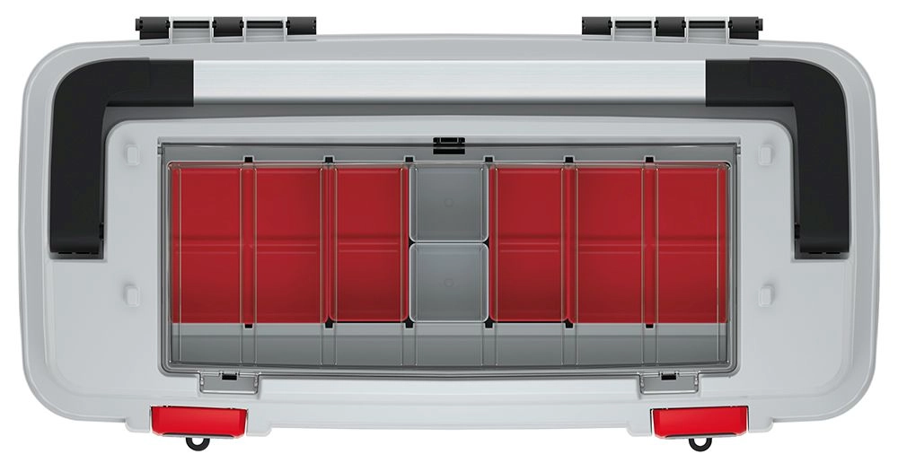 De stevige kunststof behuizing en kwaliteitsvergrendelingen houden de inhoud veilig, ook bij frequent vervoeren.