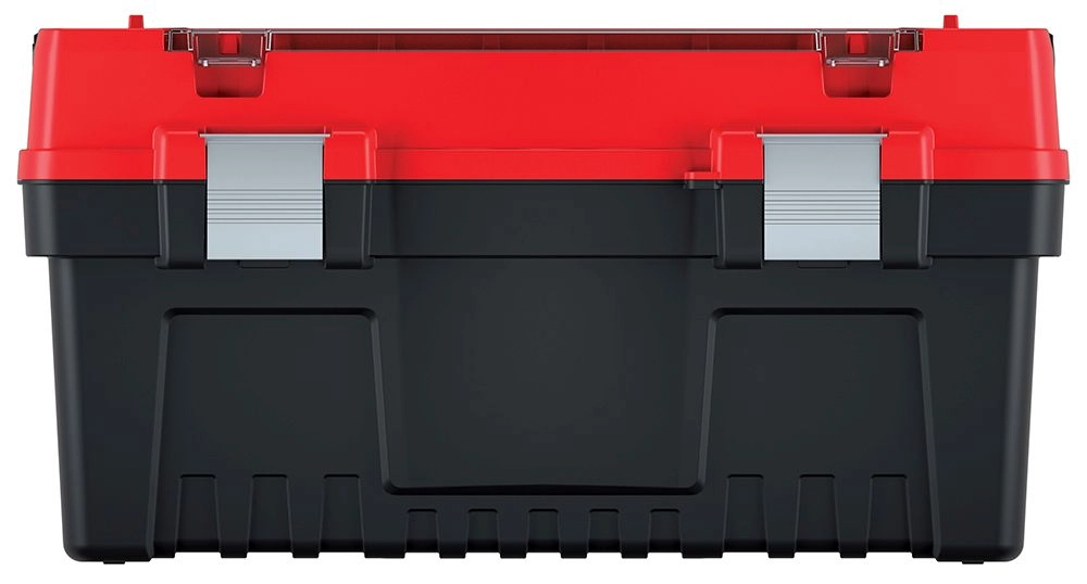 Duurzame EVO gereedschapskoffer in het praktische formaat 548 × 274 × 286 mm biedt betrouwbare opslag en transport van gereedschap. Voorzien van metalen sluitingen, een stevige metalen handgreep, een uitneembare inzet en een afsluitbare bovenorganizer met verstelbare vakken voor kleine onderdelen.