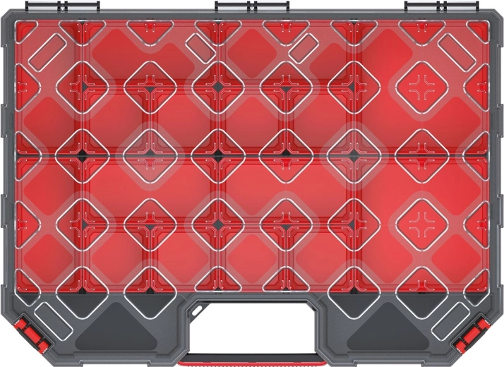 Praktische en duurzame organizer voor overzichtelijke opslag van bevestigingsmateriaal, gereedschap en kleine onderdelen. Transparant polycarbonaat deksel zorgt voor direct zicht op de inhoud, terwijl de stevige constructie en hoge wanden veilig opbergen zonder mengen tijdens het dragen garanderen.