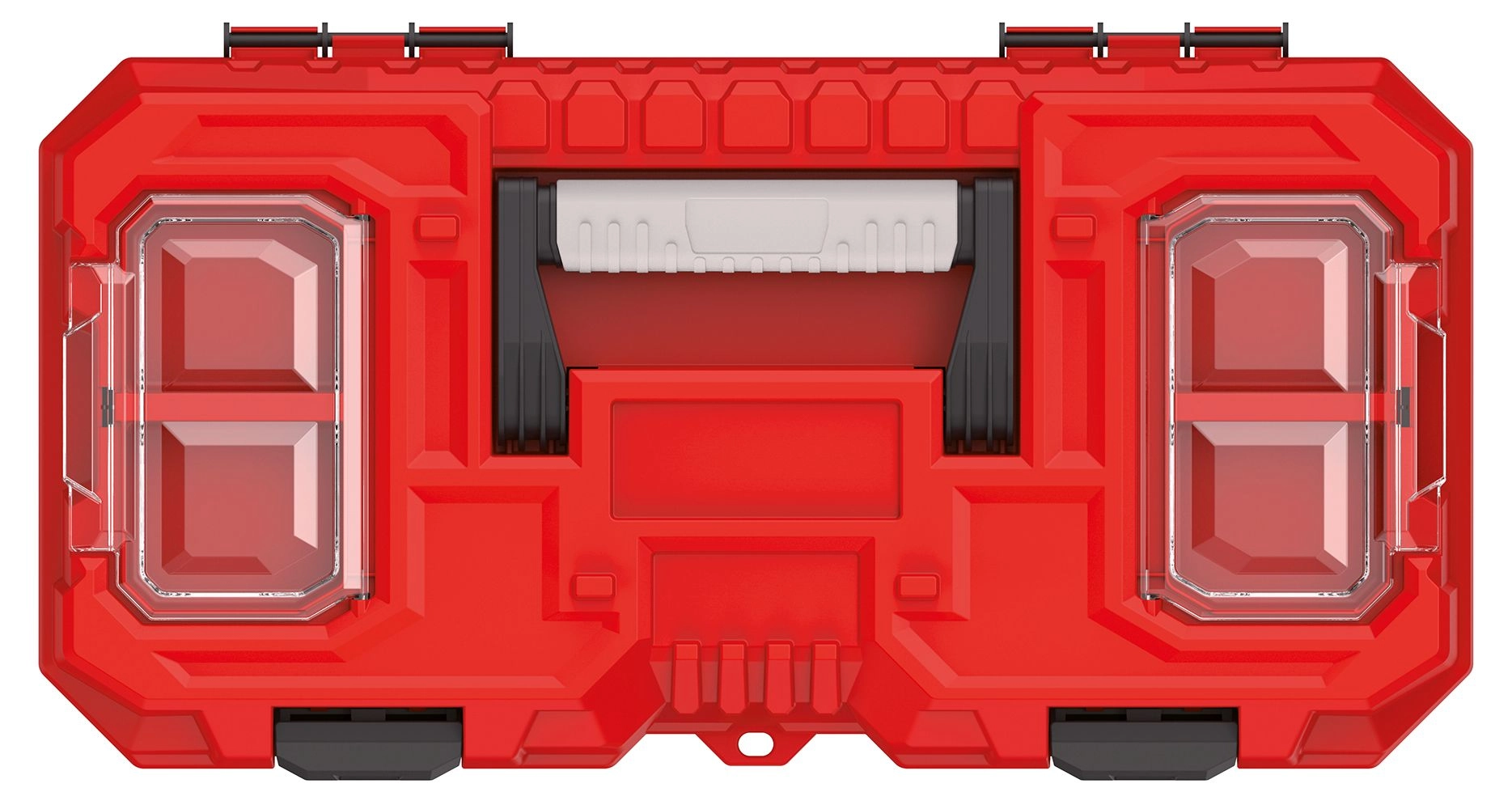 Kleine schroeven, bits en pluggen blijven overzichtelijk gesorteerd en direct beschikbaar dankzij twee aparte vakken met transparante deksels.