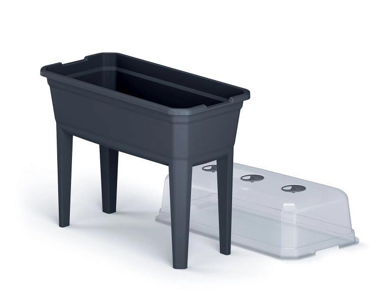 Ontdek comfortabel en stijlvol tuinieren met de hoge kweekbak RESPANA Planter Ecoline Set. Hoogwaardige, weerbestendige kunststof is eenvoudig te reinigen en de moderne antracietkleur komt tot zijn recht op elk balkon en terras. Het praktische deksel met ventilatieopeningen bevordert snellere kieming en een gezonde groei van zaailingen, terwijl de hogere constructie uw rug ontziet.