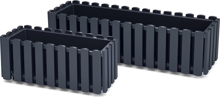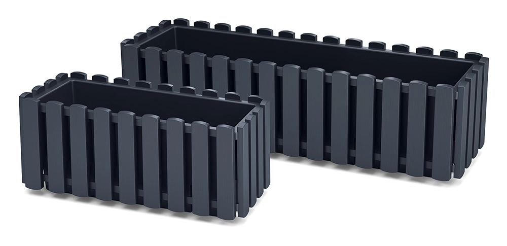 Stijlvolle bloembak van 38 cm in antraciet met een design dat houten latjes imiteert, ideaal voor balkon, terras en interieur. Gemaakt van kwaliteitskunststof die vorst- en UV-bestendig is, met eenvoudig onderhoud en laag gewicht voor gemakkelijk hanteren. Perfect voor bloemen en seizoensgroenten en dankzij de universele afmetingen geschikt voor vensterbanken, balustrades en vrijstaand op het terras.