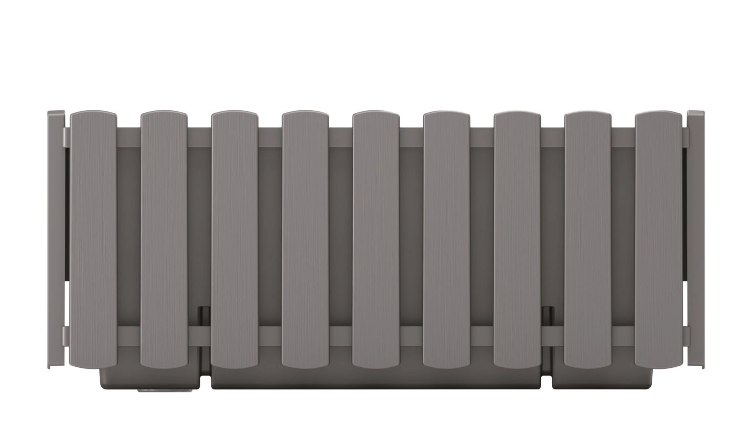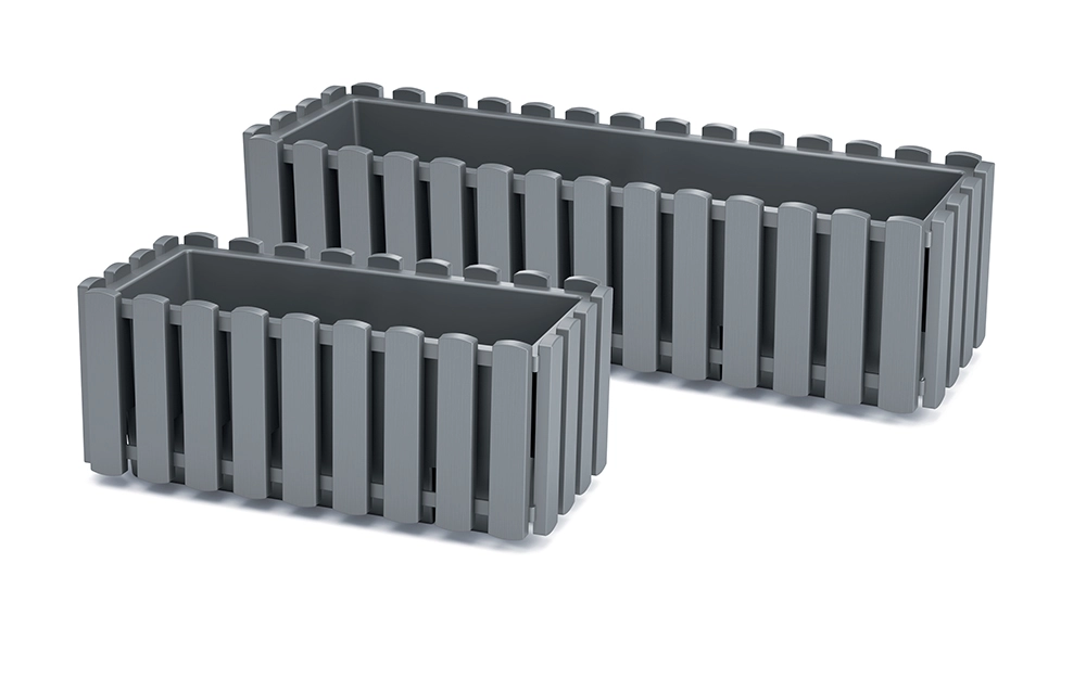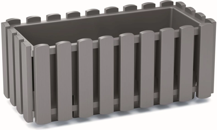De veelzijdige kunststof balkonbak in de moderne tint grijs steen combineert het uiterlijk van houten latten met de praktische voordelen van een duurzaam materiaal. Geschikt voor vensterbanken, balkons, terrassen en binnenruimtes, en dankzij UV-stabilisatie blijft het uiterlijk lang mooi zonder te vervagen.