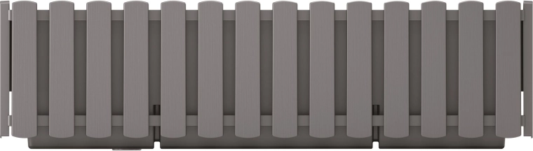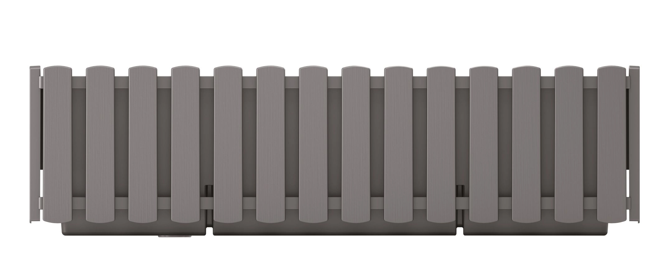 Elegante balkonbak van 58 cm in de kleur grijs steen, ideaal voor het kweken van bloemen, kruiden en kleine groentes op balkons en terrassen. Het decor met verticale “latten” oogt zowel modern als romantisch en laat zich gemakkelijk combineren met tuinmeubelen en accessoires.