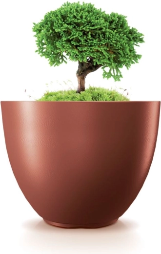 Deze ruime bloempot in een kopertint geeft je huis of tuin een verfijnd accent. Dankzij het gladde oppervlak en de moderne lijnen past hij perfect in hedendaagse interieurs en ook bij een klassieke stijl. Het lage gewicht vergemakkelijkt het hanteren, terwijl het materiaal duurzaam en onderhoudsarm blijft.