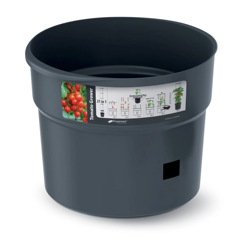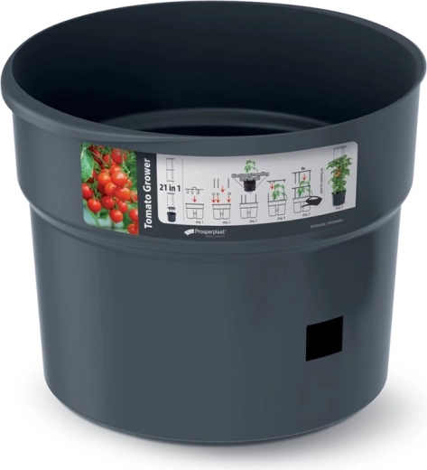 Praktische plantenbak voor stads­tuinieren met een inhoud van 18 l en geïntegreerde steun voor tomaten en andere klimplanten. Duurzaam kunststof in antraciet zorgt voor een lange levensduur, terwijl het doordachte ontwerp stabiele groei, een gezond wortelstelsel en een rijke oogst ondersteunt, zelfs op balkons en terrassen.