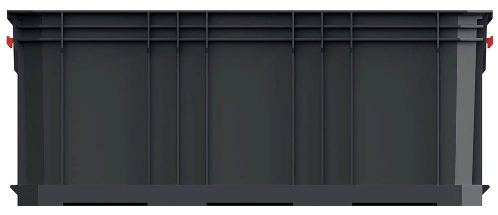Versterkte wanden en stevige rode vergrendelingen houden de inhoud veilig, zelfs bij frequent transport. Ideaal voor gereedschap en materiaal in veeleisende omgevingen.