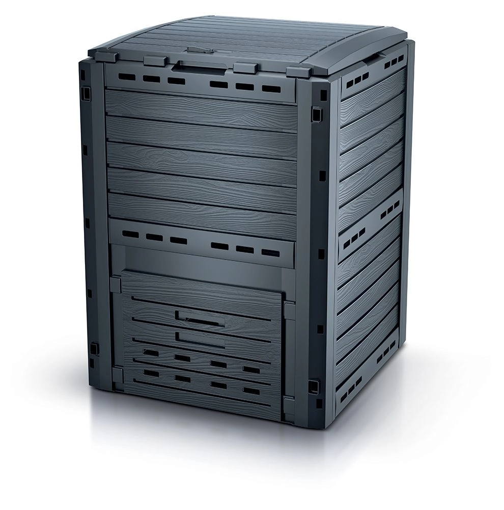 Praktische tuincomposteerbak met een inhoud van 280 l in een elegante antracietkleur voor snelle en milieuvriendelijke verwerking van bioafval. De gesloten constructie voorkomt toegang voor dieren, ventilatieopeningen zorgen voor een juiste luchtcirculatie en het deksel minimaliseert geurtjes en maakt het toevoegen van materiaal eenvoudiger. Gemaakt van duurzaam kunststof met verhoogde weerstand tegen UV-straling en weersinvloeden, ideaal voor kleinere tuinen en terrassen.
