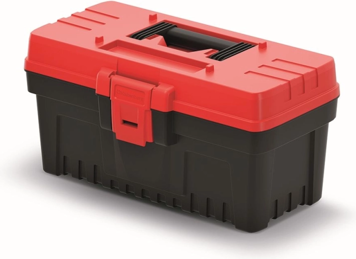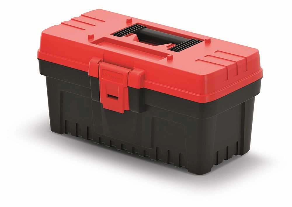 Praktische en duurzame EVO gereedschapskoffer in het rood met compacte afmetingen van 360 × 193 × 186 mm en een slimme indeling zonder vaste binnenvakken. Inclusief een uitneembare inzet voor snelle organisatie en afsluitbare buitenvakken voor kleingoed en accessoires.