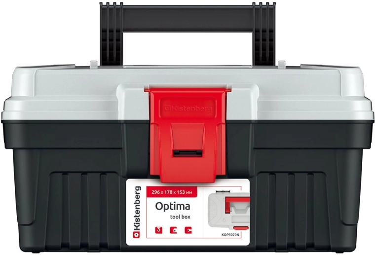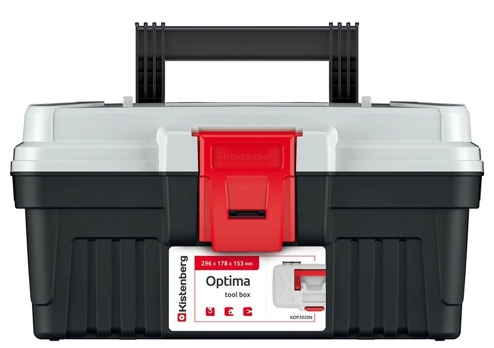 Praktische en duurzame OPTIMA gereedschapskoffer in grijs met compacte afmetingen van 296 × 178 × 153 mm en slimme indeling zonder interne vakverdelers. Inclusief een uitneembare inzet voor snelle organisatie en afsluitbare buitenvakken voor kleine onderdelen. Ideaal voor de thuisklusser en professioneel gebruik.