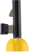 Duurzaam metalen frame, stoffen bekleding en een comfortabel J‑handvat voor een zekere grip, zelfs in de regen.